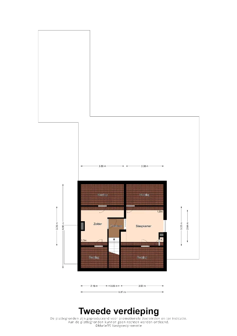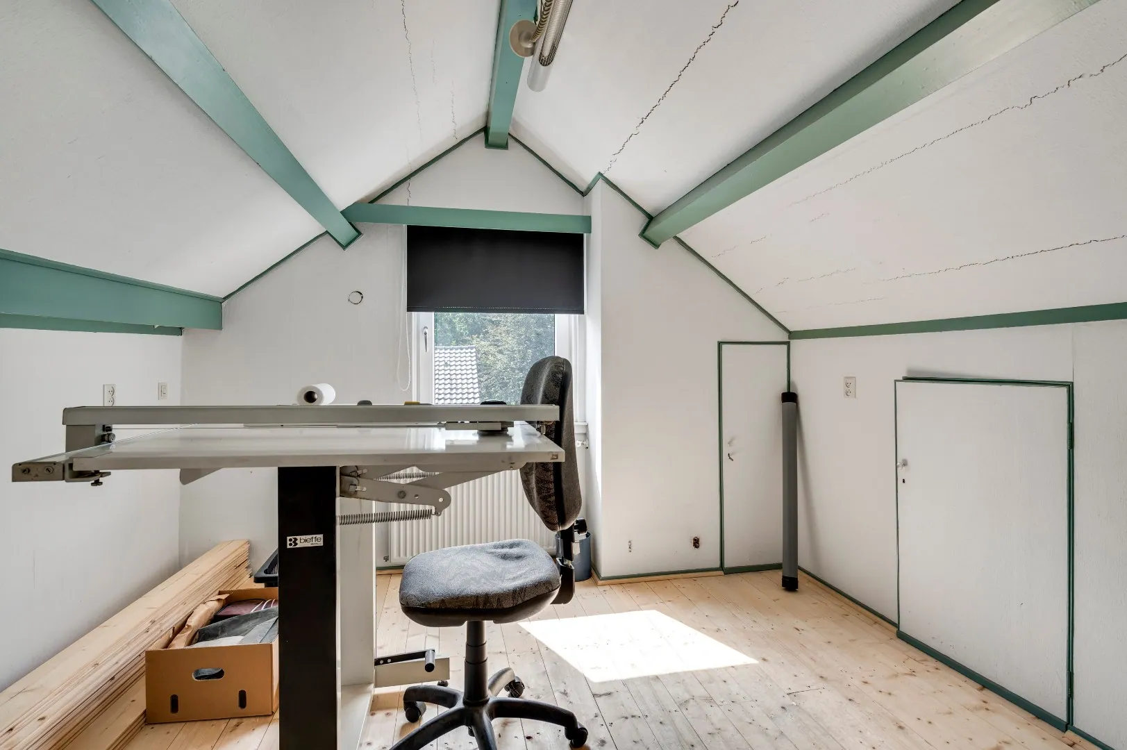 Vaste trap zolder naar nog eens twee ruimten. Een extra slaapkamer, en een extra bergzolder.