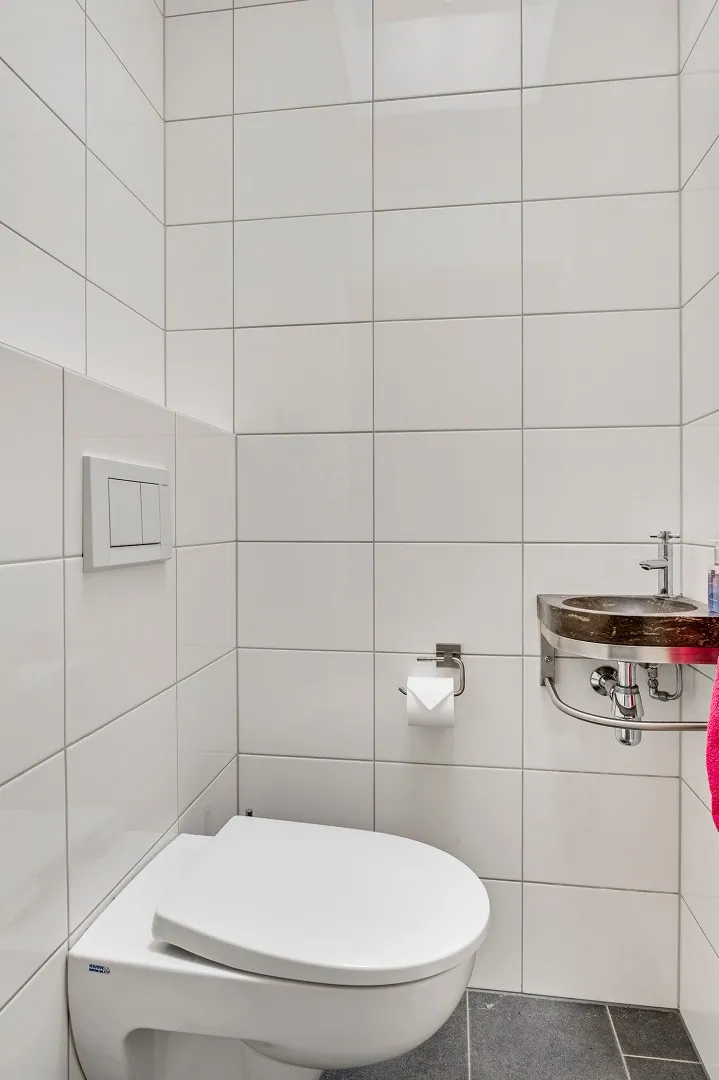 Portaal met toiletruimte, doorgang naar technische ruimte v.v. nieuwe cv-installatie.