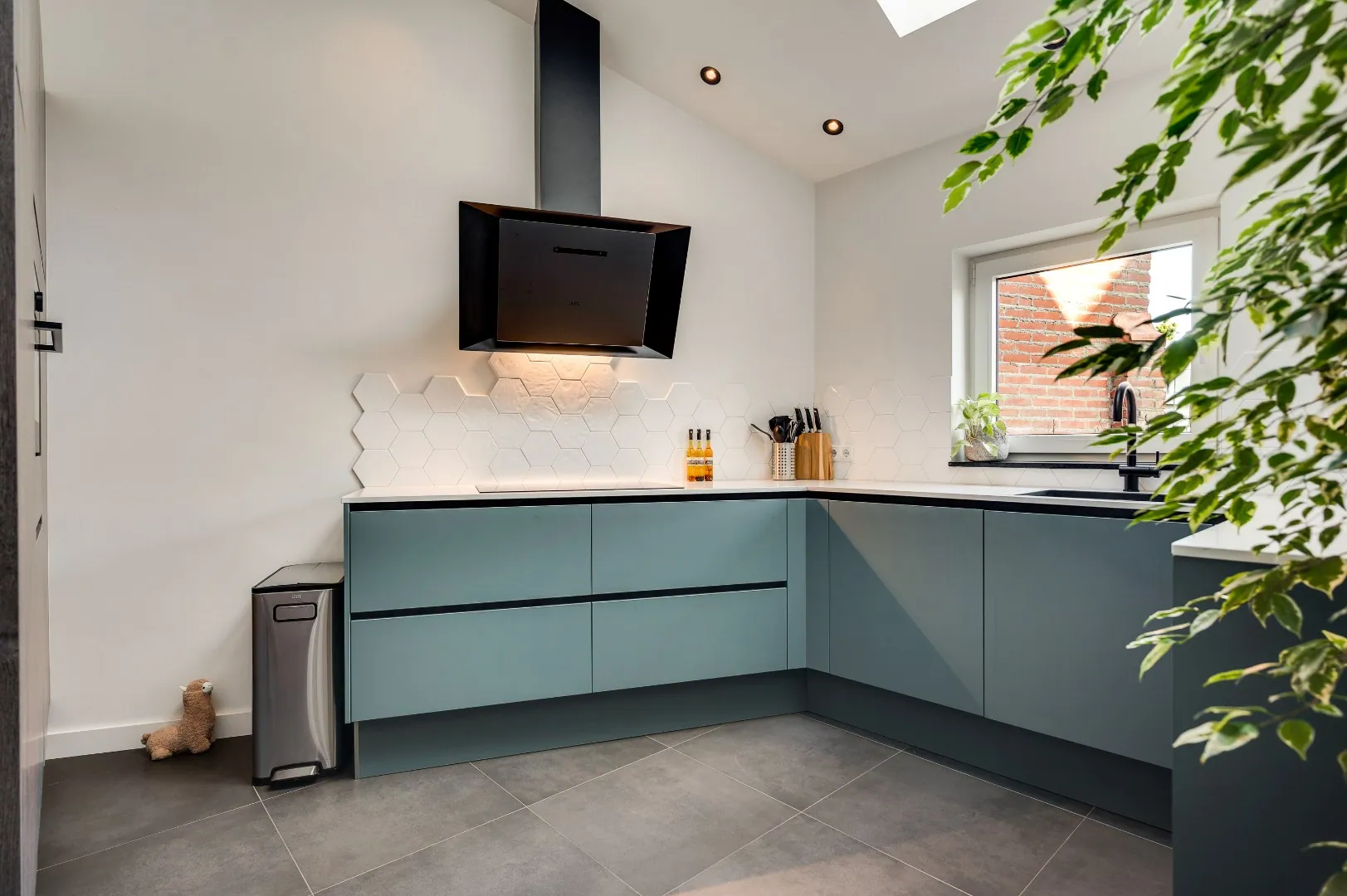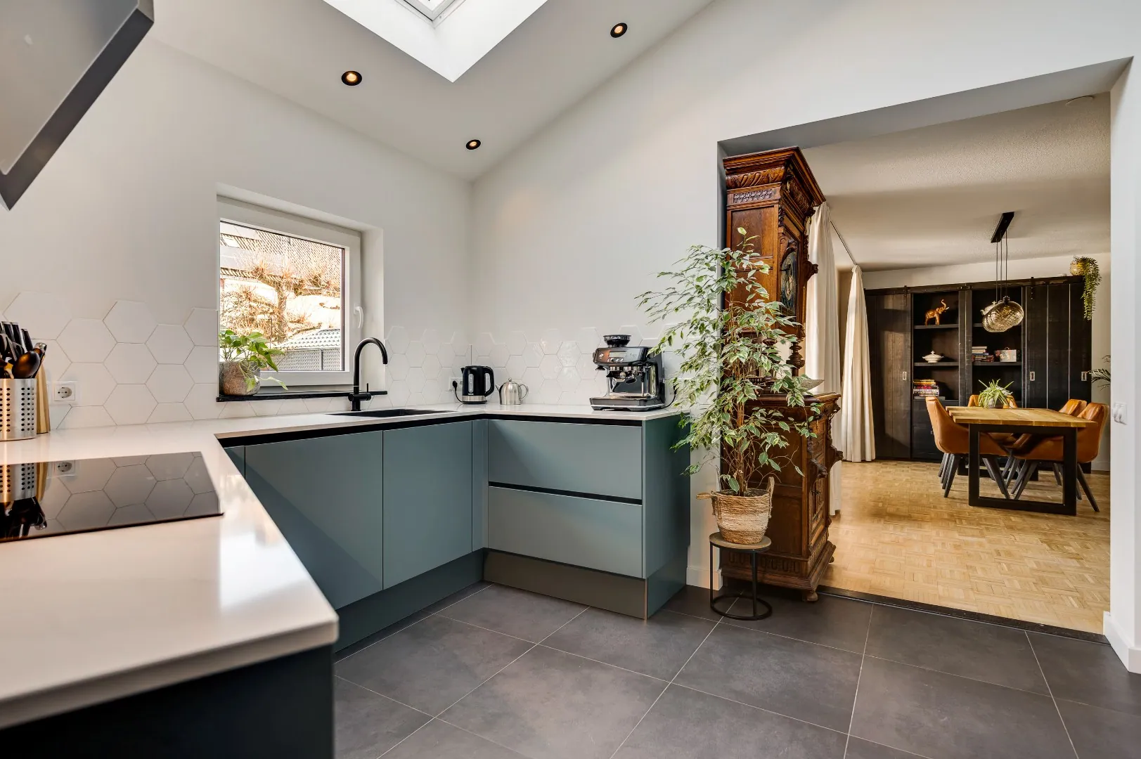 Doorgang naar luxe keuken compleet vernieuwd, aangebouwd en hoge schuine daken met fenomenaal daglicht !! (alleen al voor deze keuken wil je de woning aankomen),