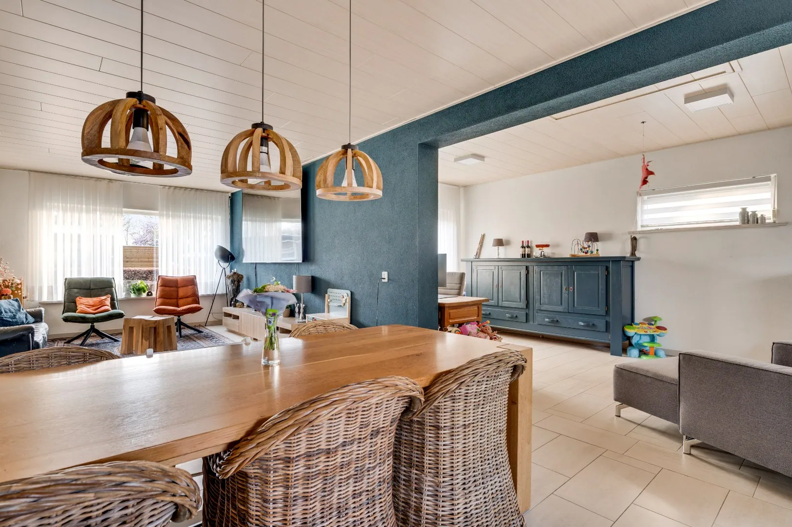 Eenmaal binnen, staat u versteld van de functionele ruimtes, welke elkaar naadloos opvolgen.