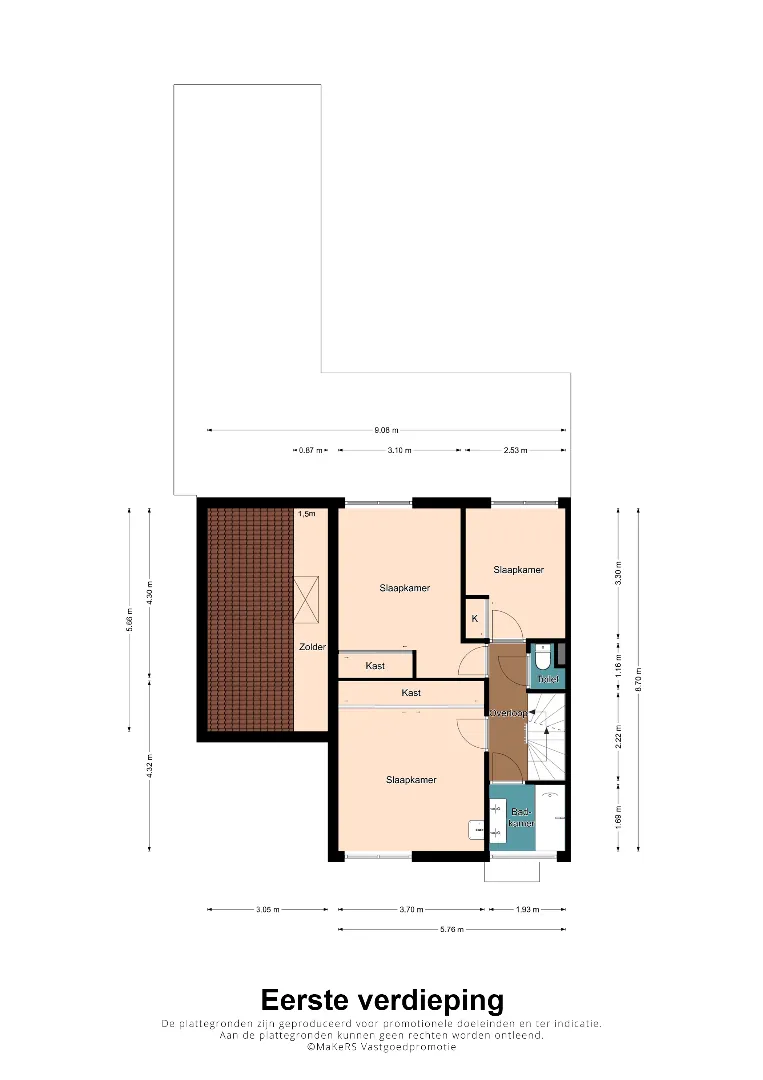 Extra hal met aansluitend nog eens 2 slaapkamers.
