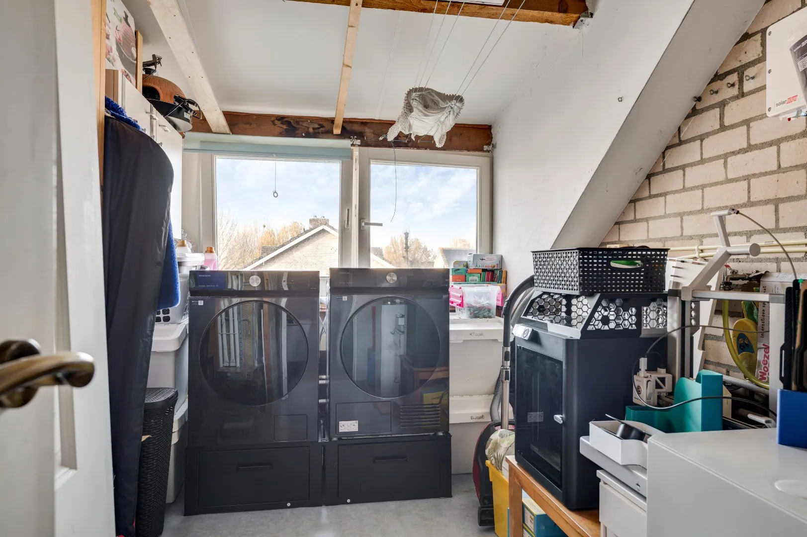 Overloop met aparte bergruimte, toegang naar een complete wasruimte met div. aansluitingen wasm./droger, cv opstelling, boiler(s) etc. mega uitbouw door dakkapel.