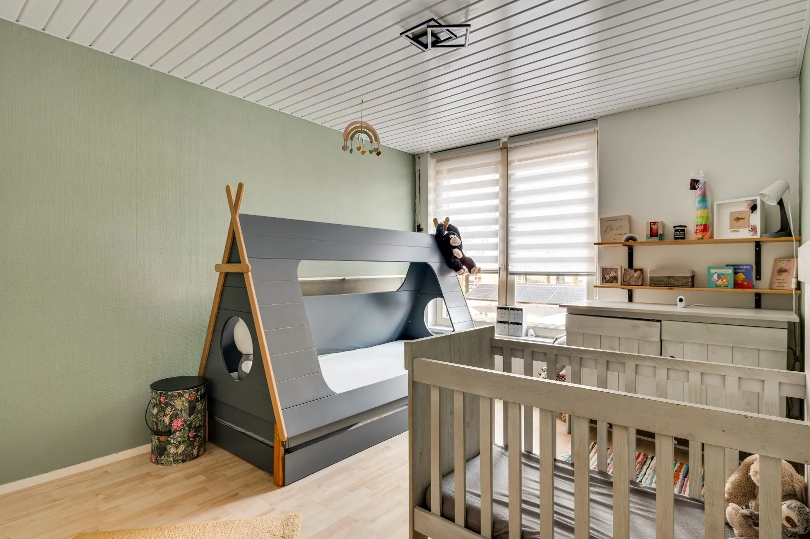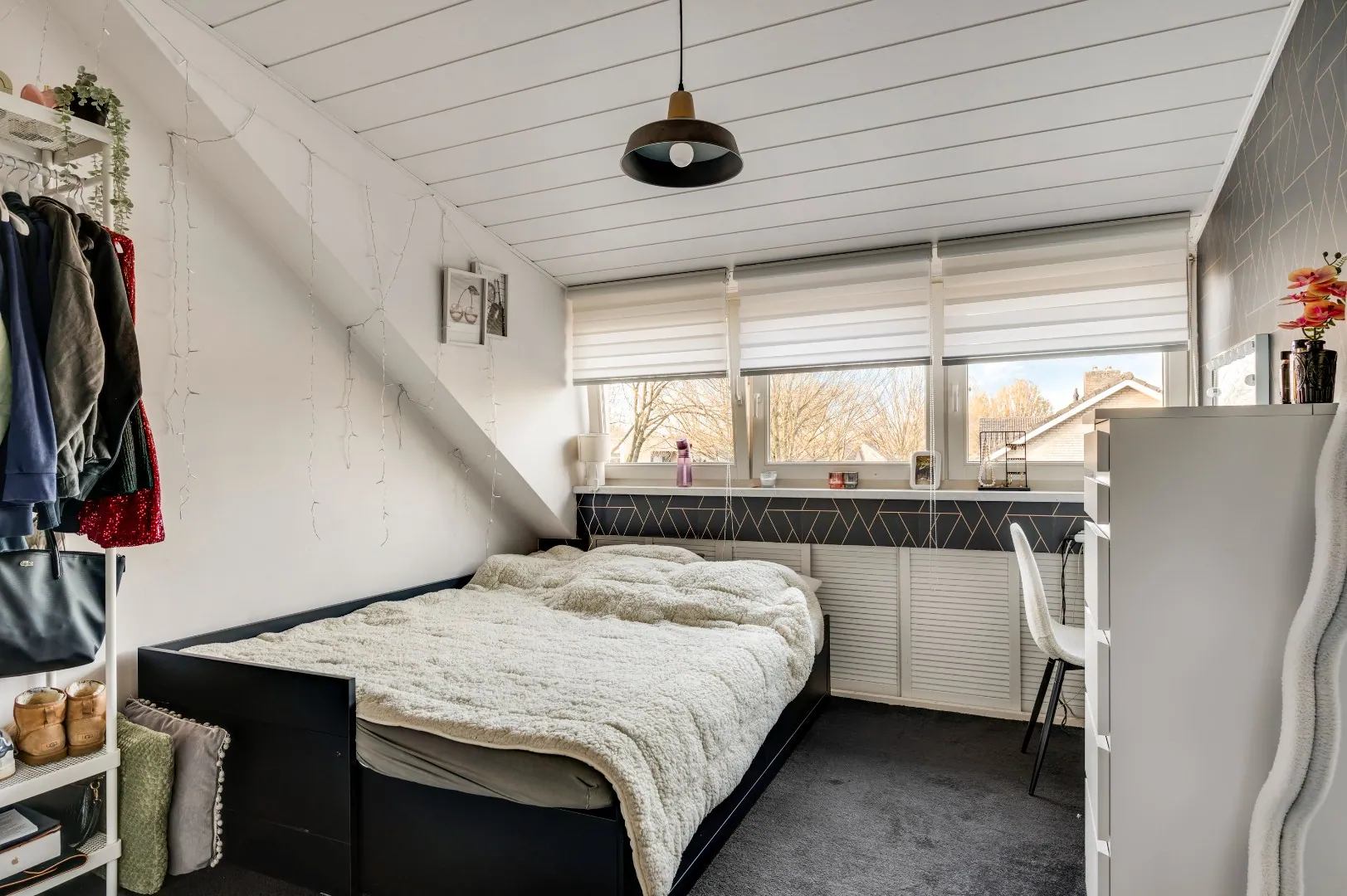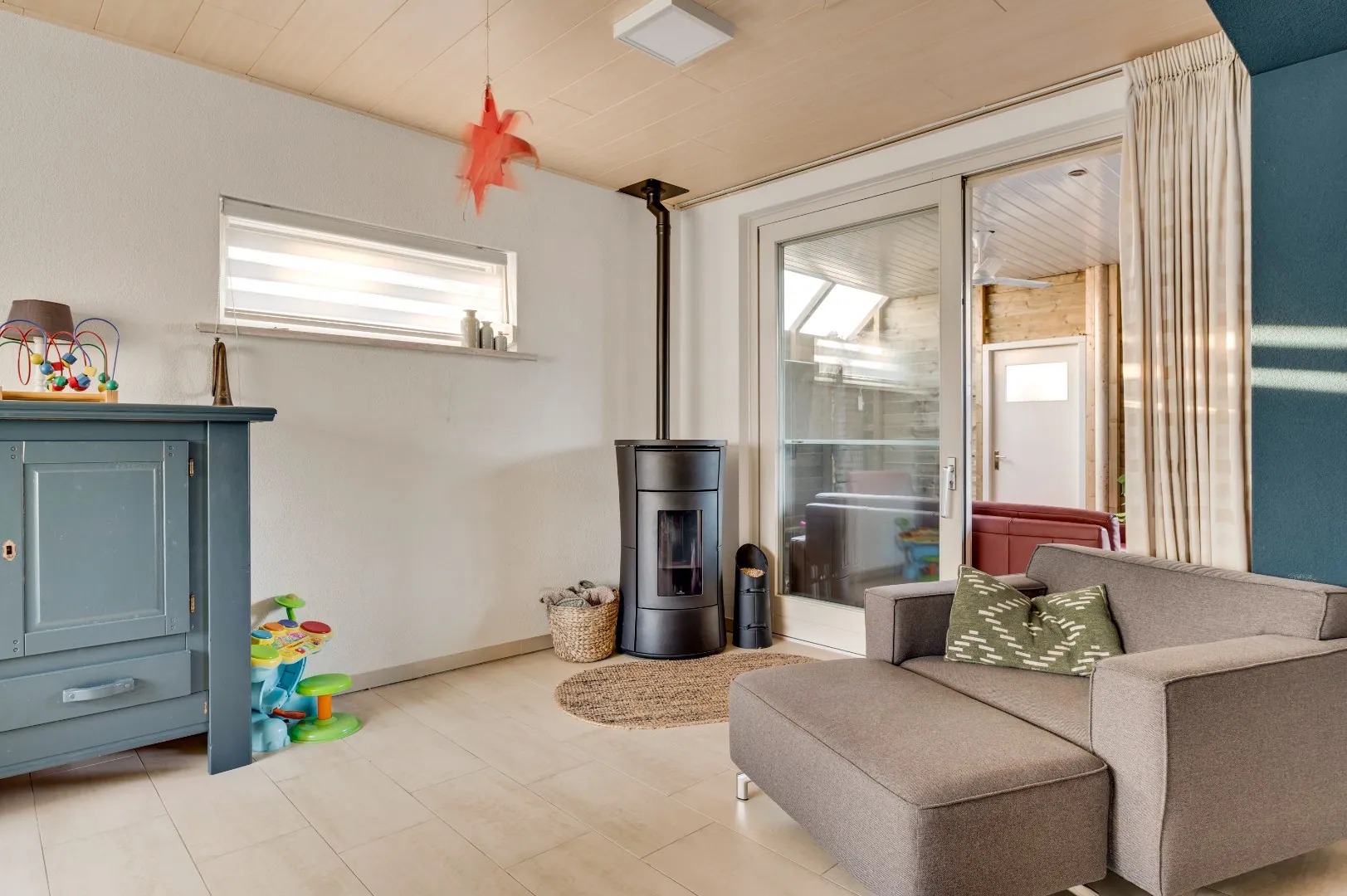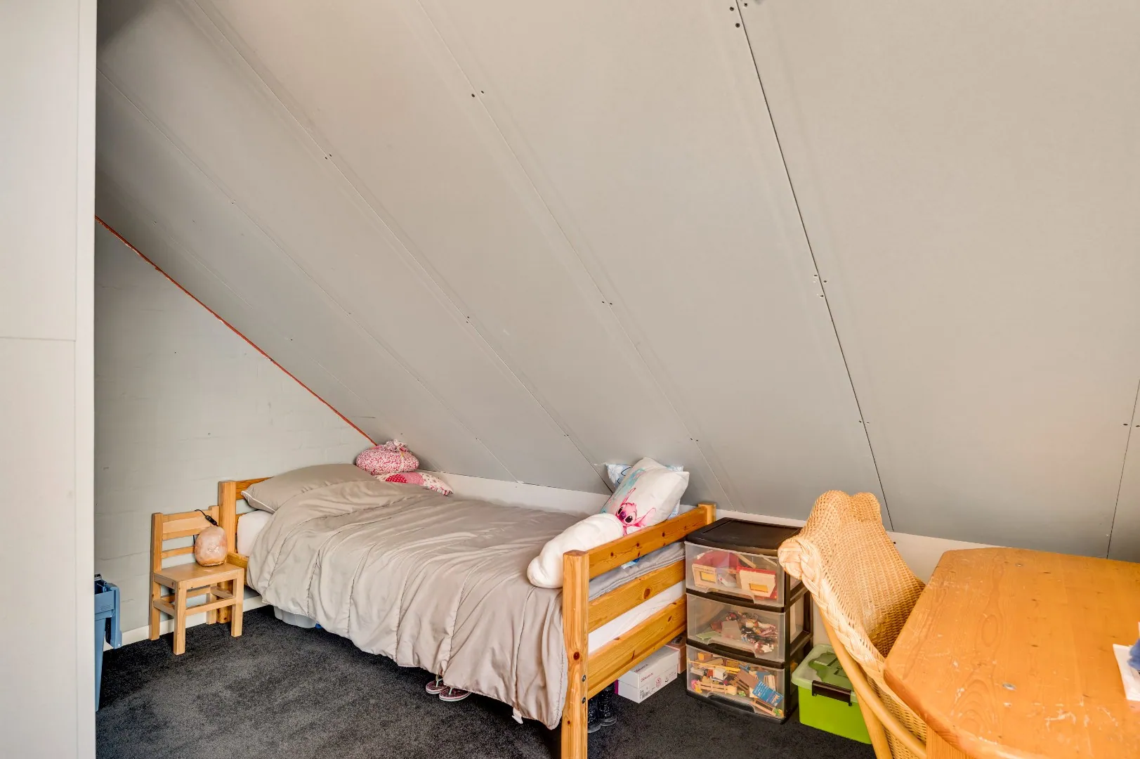Boven de zitkamer is nog een extra bergruimte gesitueerd onder de schuine kap.