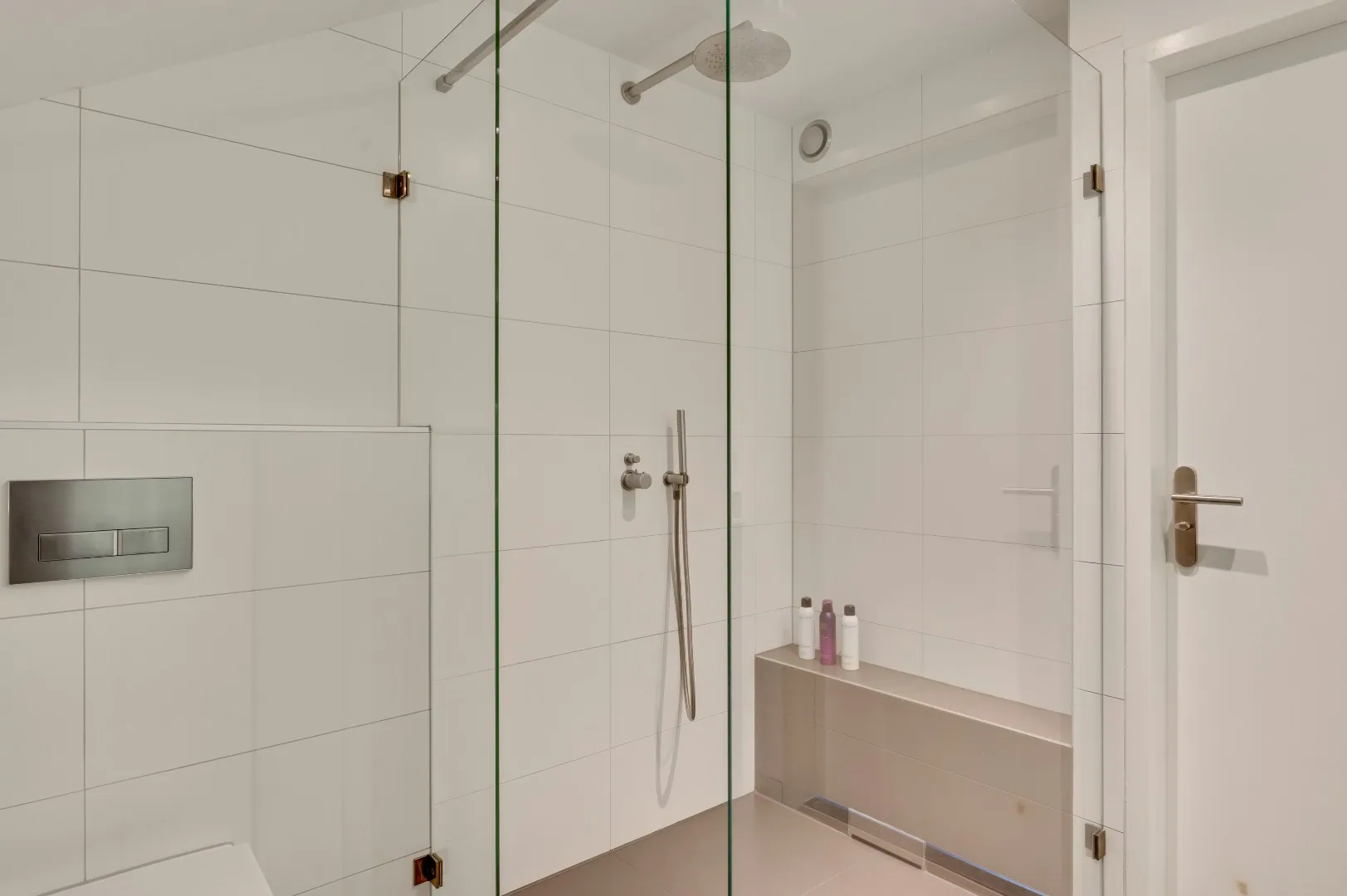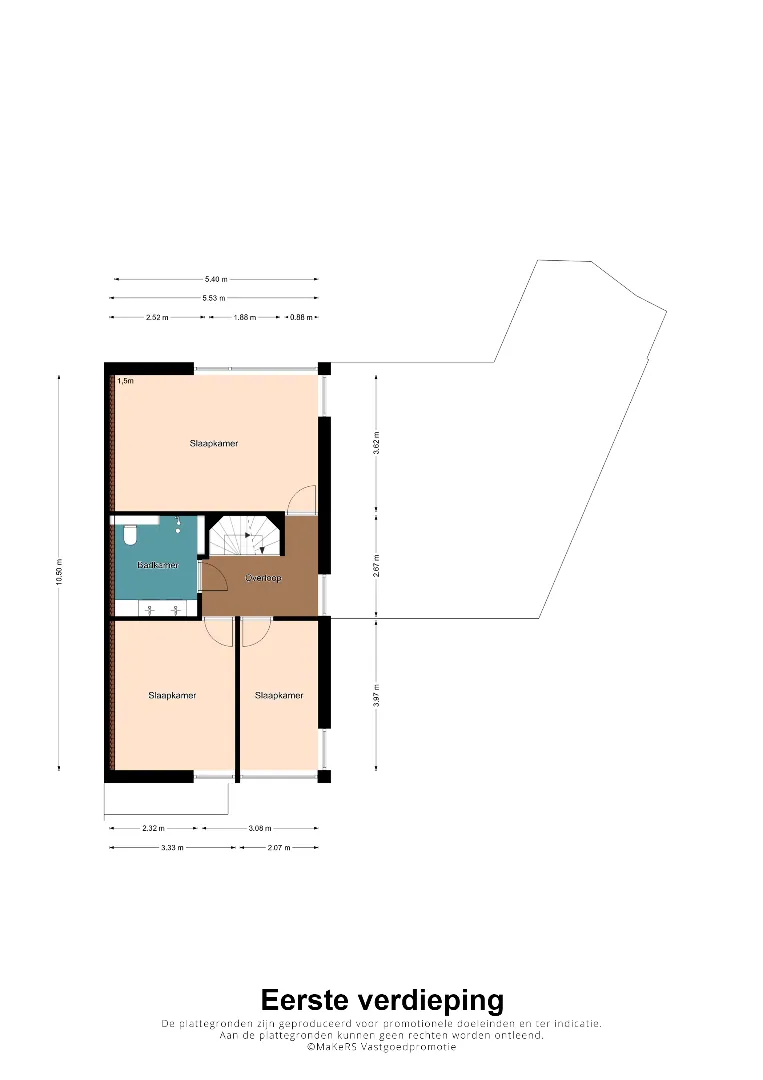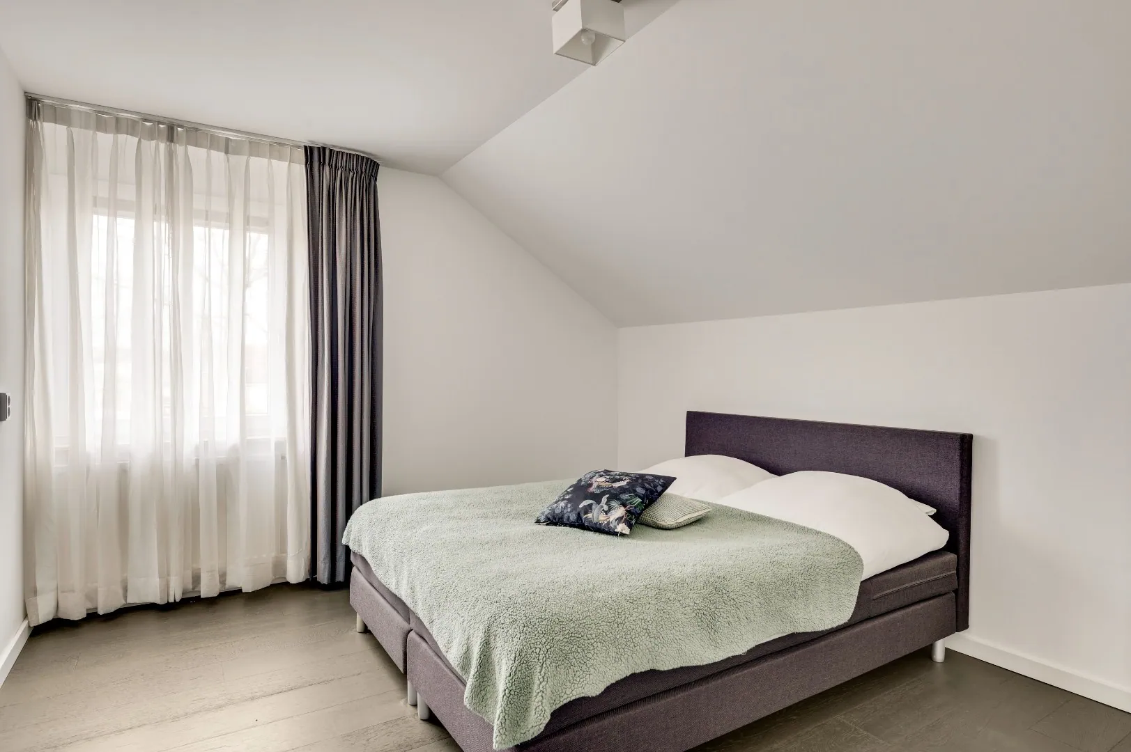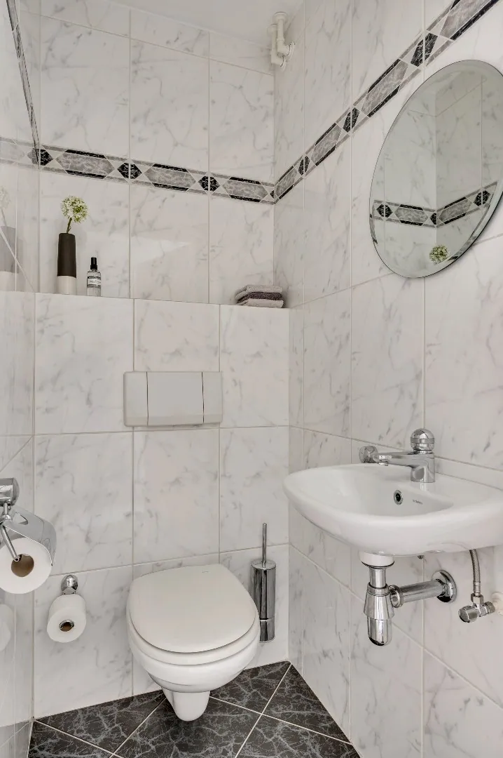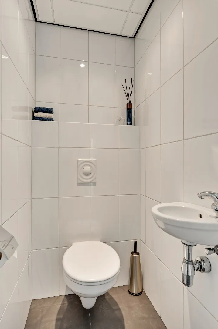 De mooie hardhouten trap brengt u naar de verdieping, v.v. prachtige plankenvloer, wederom ruimte ruimte ruimte, luxe badkamer (Hotel chique, must see), 3 slaapkamers, waarvan de kleinste kamer is omgetoverd tot inloopkastenkamer, en de ouderslaapkamer is aan de achterzijde gesitueerd, ook hier wordt RUIMTE met hoofdletters geschreven. Fantastische raampartij met extra hoekraam, airco en rolluiken.