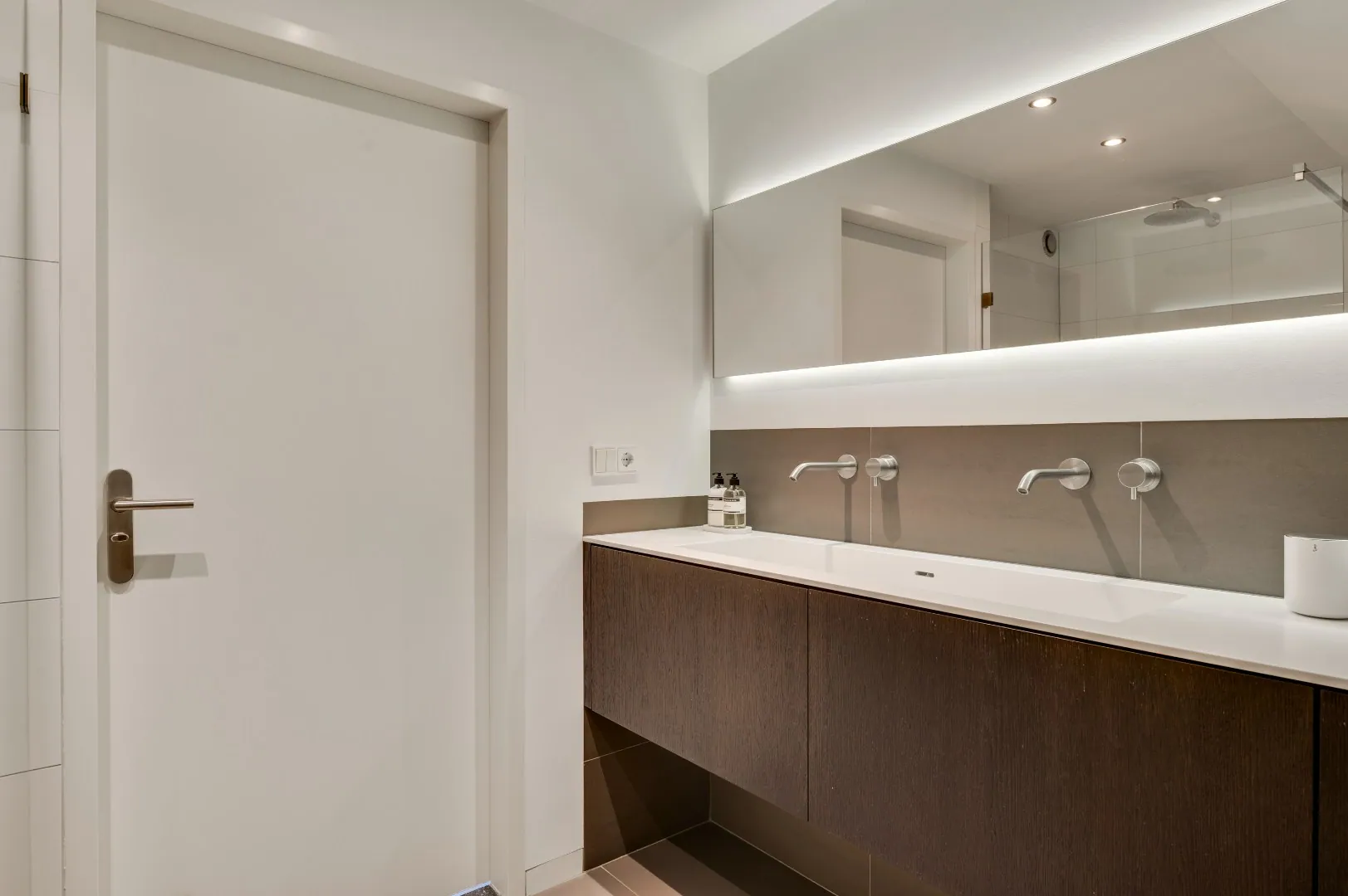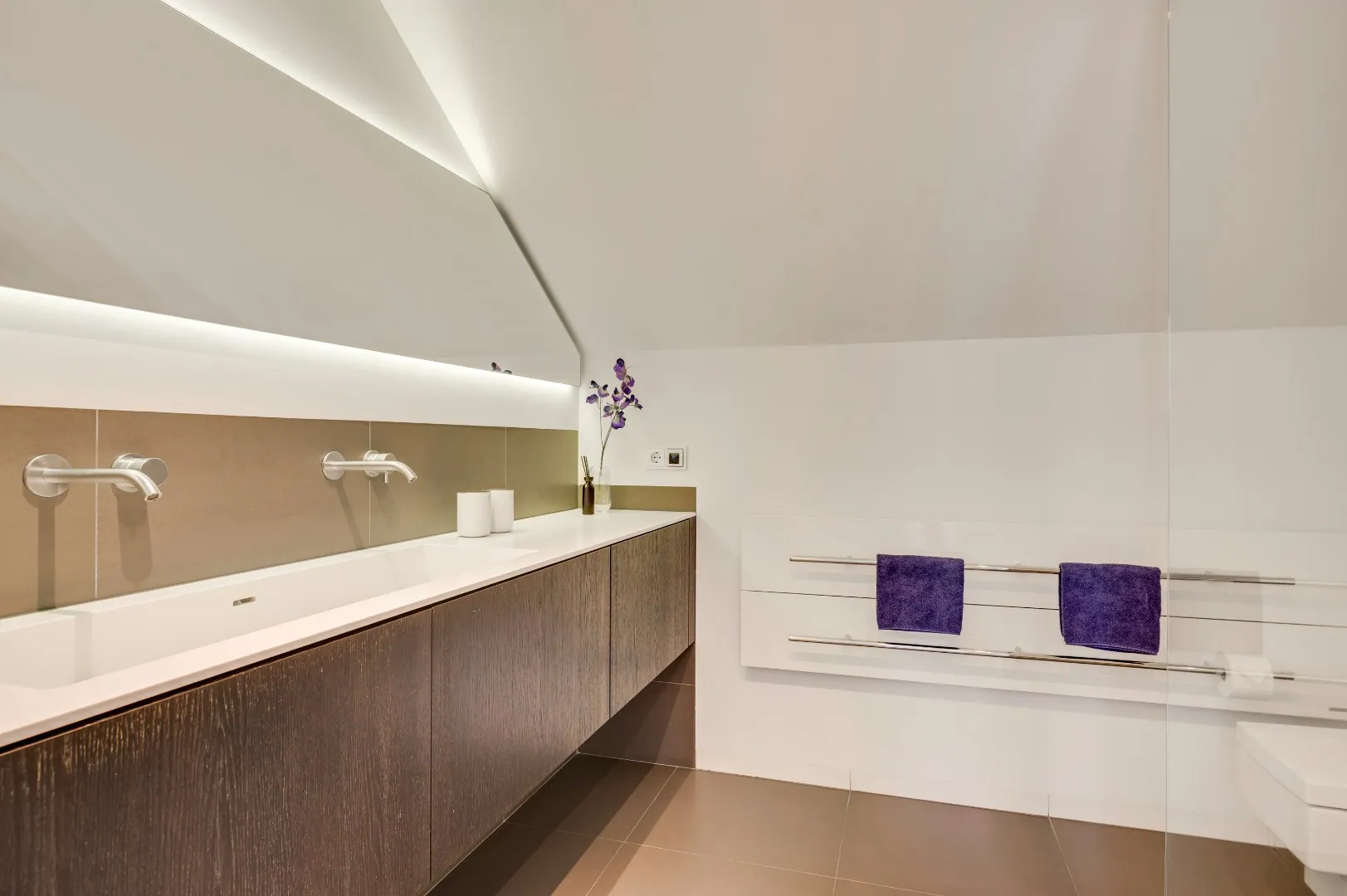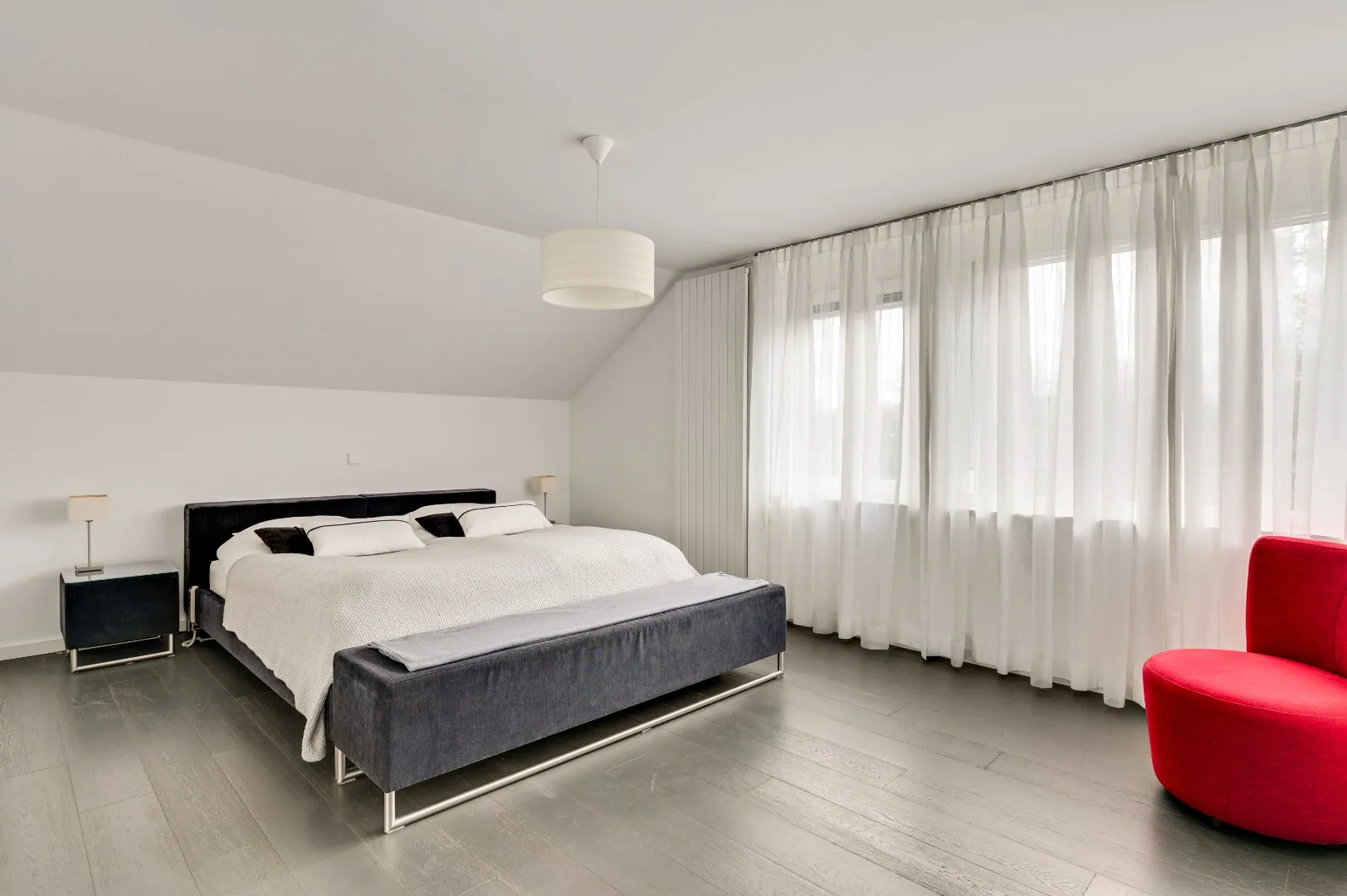 De mooie hardhouten trap brengt u naar de verdieping, v.v. prachtige plankenvloer, wederom ruimte ruimte ruimte, luxe badkamer (Hotel chique, must see), 3 slaapkamers, waarvan de kleinste kamer is omgetoverd tot inloopkastenkamer, en de ouderslaapkamer is aan de achterzijde gesitueerd, ook hier wordt RUIMTE met hoofdletters geschreven. Fantastische raampartij met extra hoekraam, airco en rolluiken.