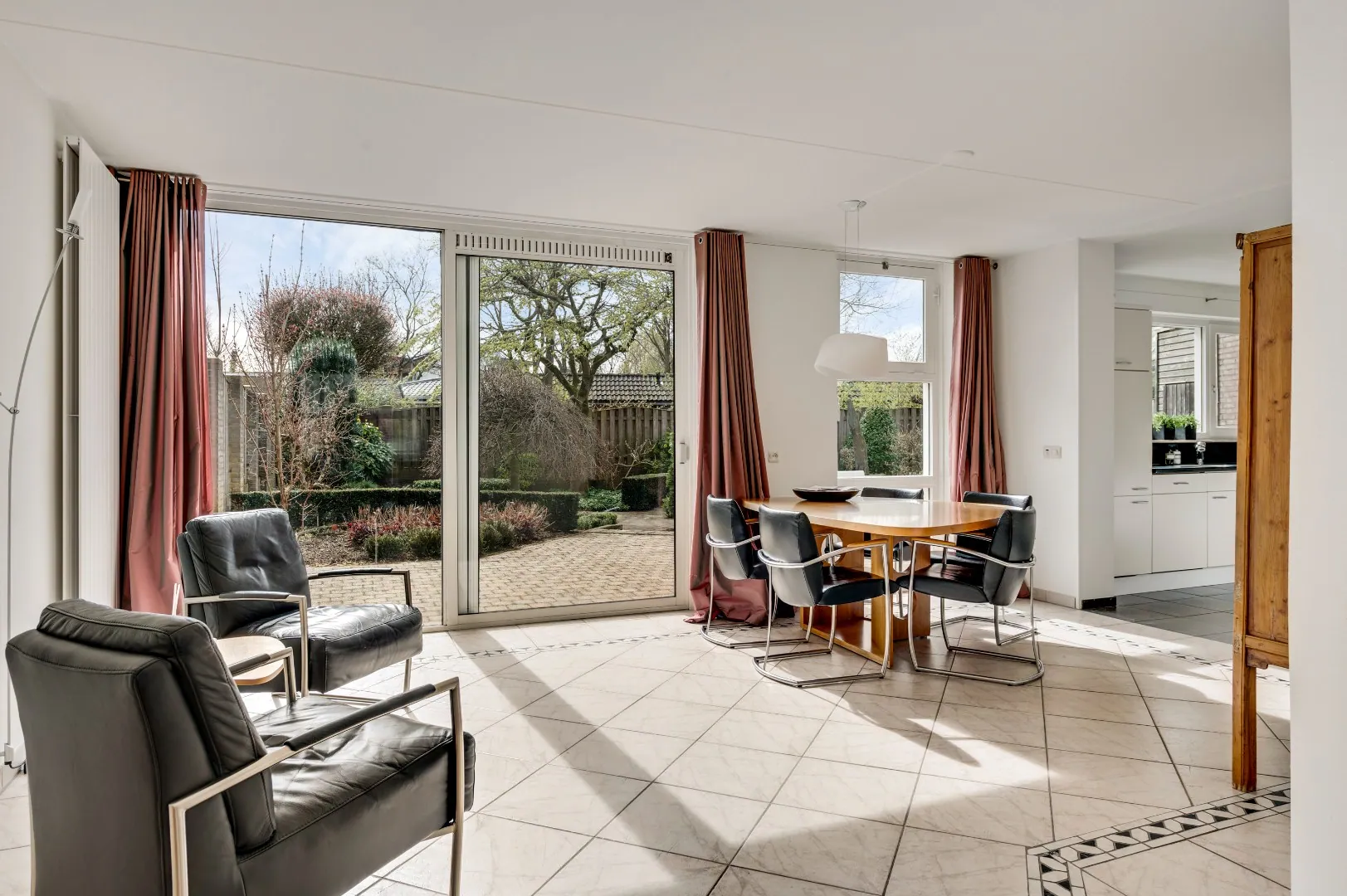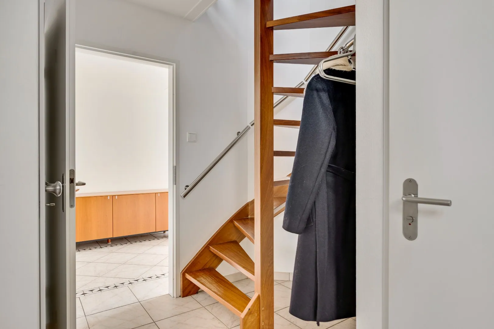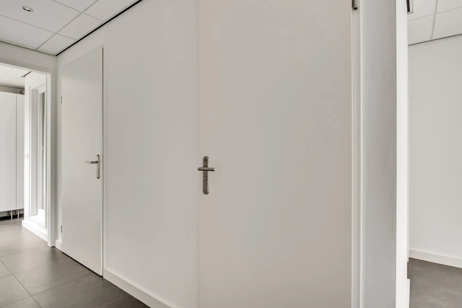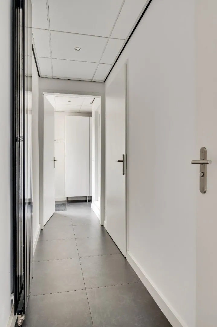 Binnendoorgang naar bijkeuken en hal naar praktijkruimte en achterom.