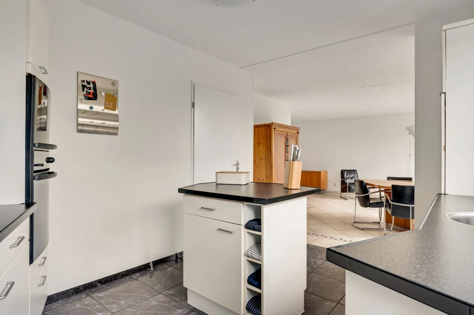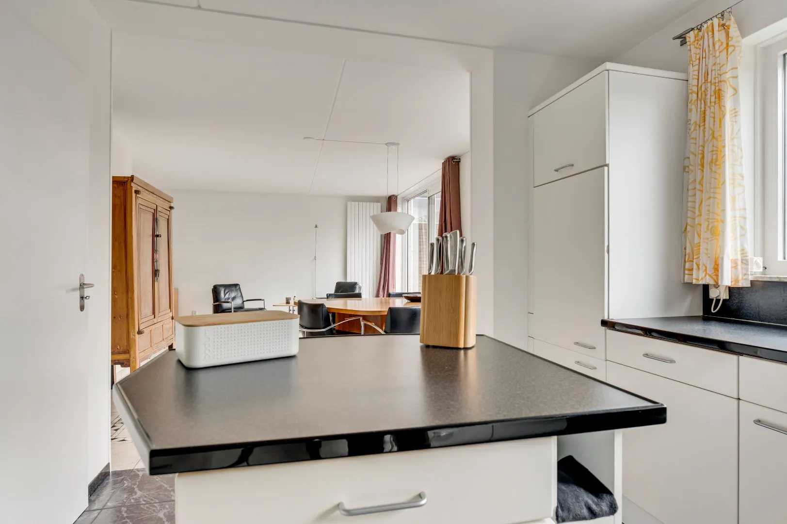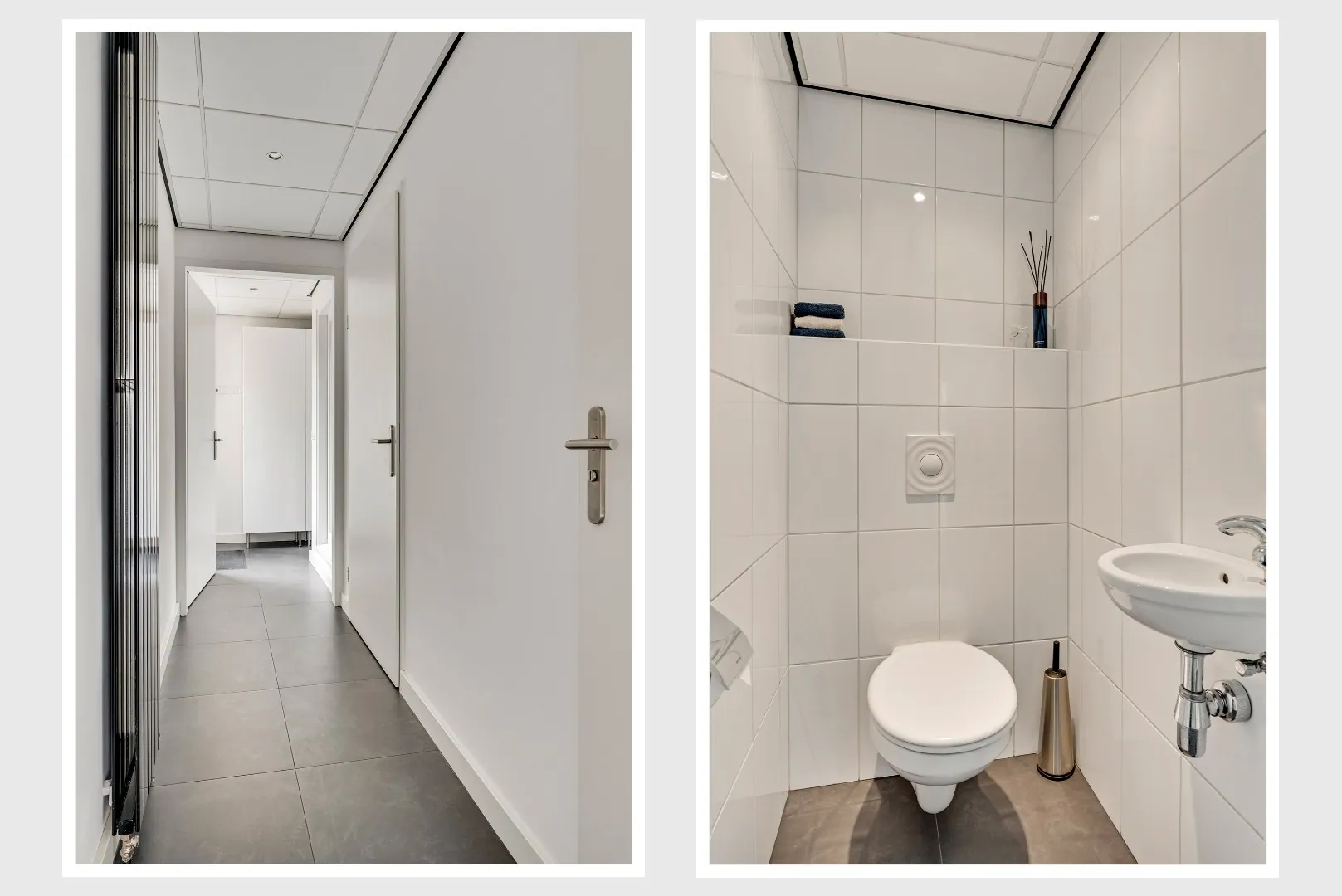 Binnendoorgang naar bijkeuken en hal naar praktijkruimte en achterom.