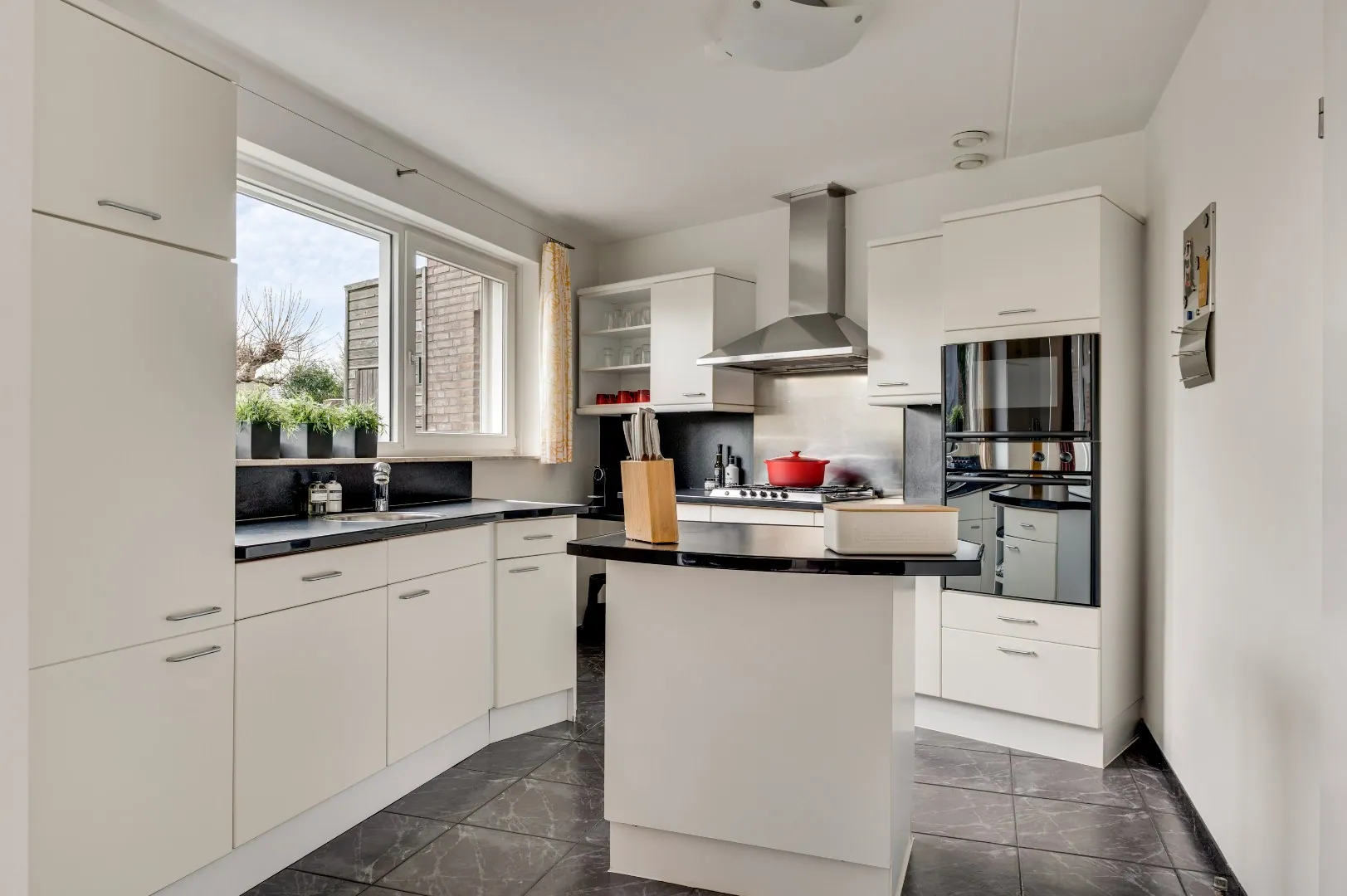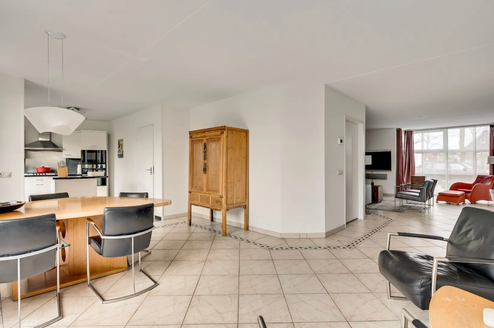 Ruim hoofdentree, riante toilet, doorgang living met tegelvloer en vloerverwarming, perfecte maatvoering, erker voorzijde, grote schuifpui achterzijde, eetkamergedeelte welke naadloos overgaat in de leef-keuken met schuine opstelling en zicht over eigen park!