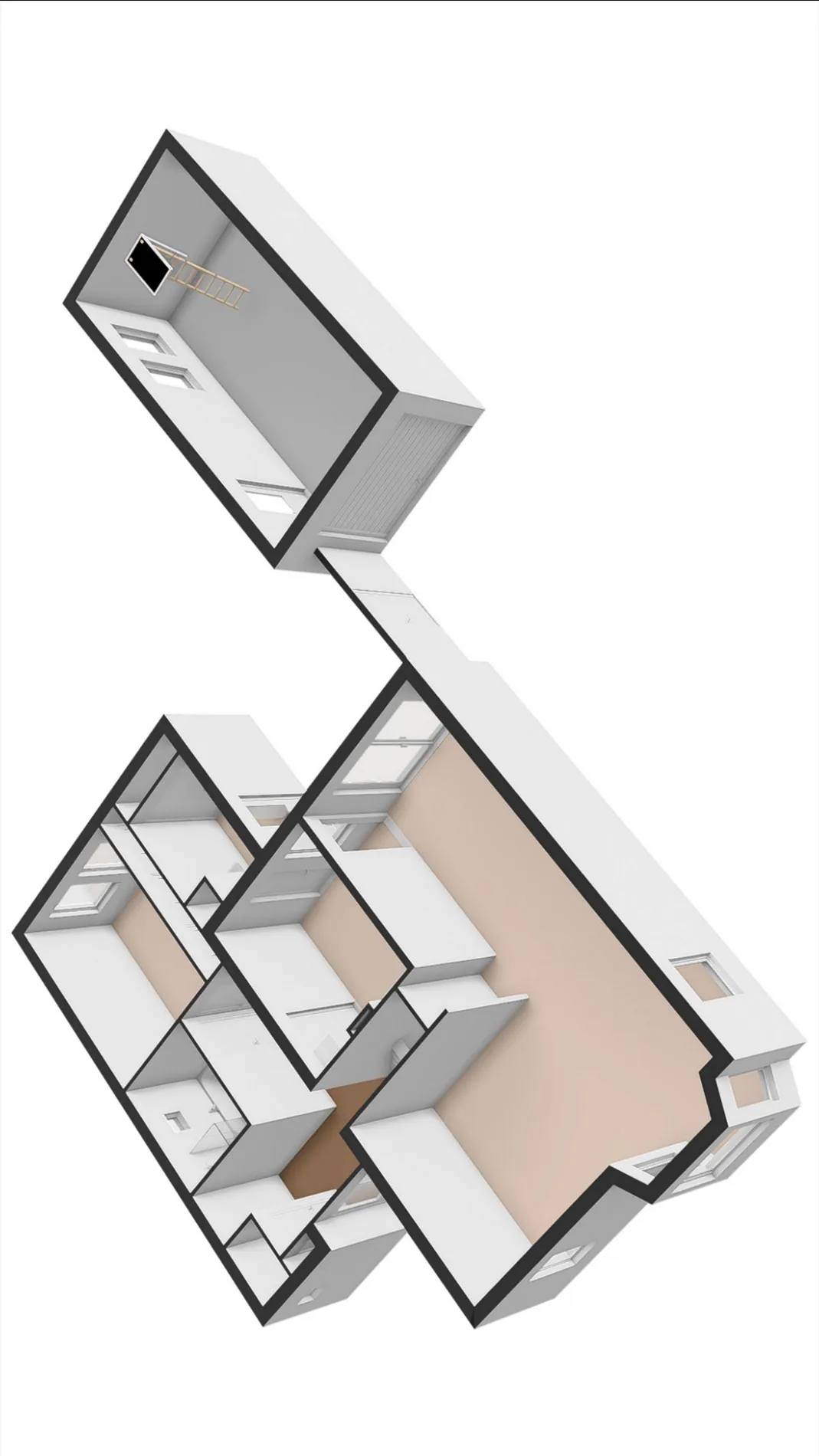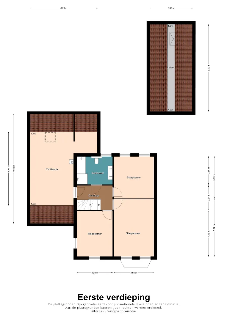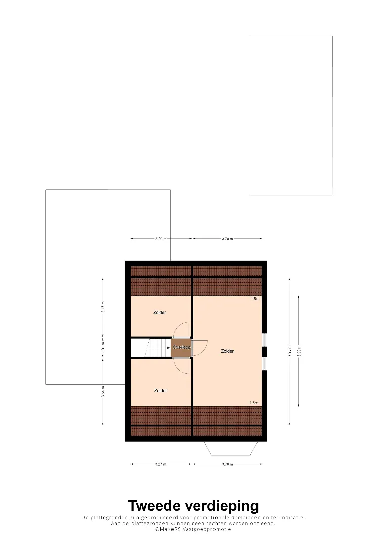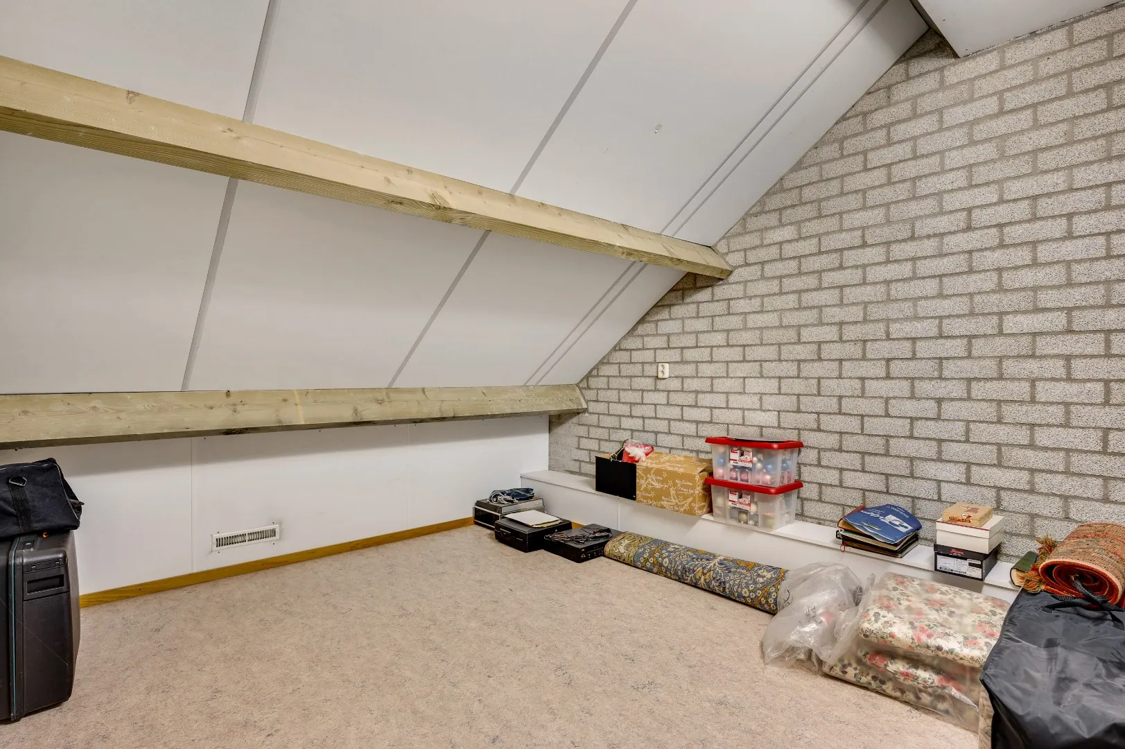 Eenzelfde trap voert u verder naar een complete leef-verdieping met een 5e slaapkamer. 2 extra bergruimtes welke in een eenvoudige handomdraai nog eens ruimte kunnen bieden voor slaapkamer 6 en slaapkamer 7 !!