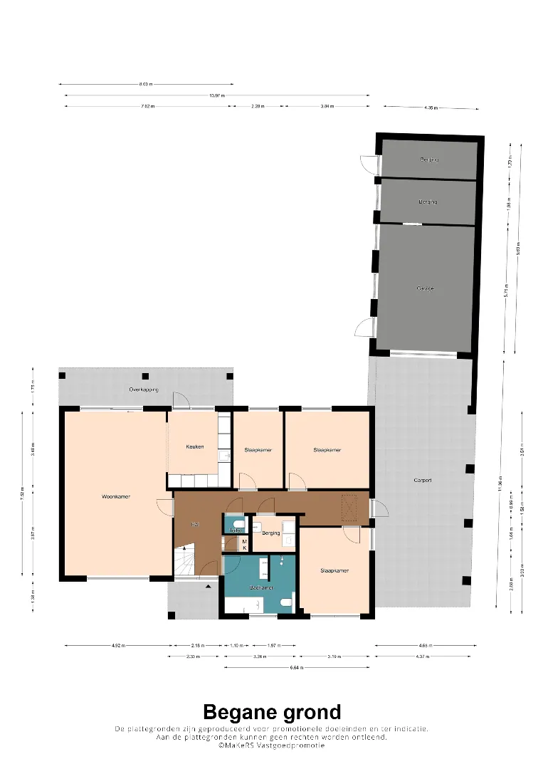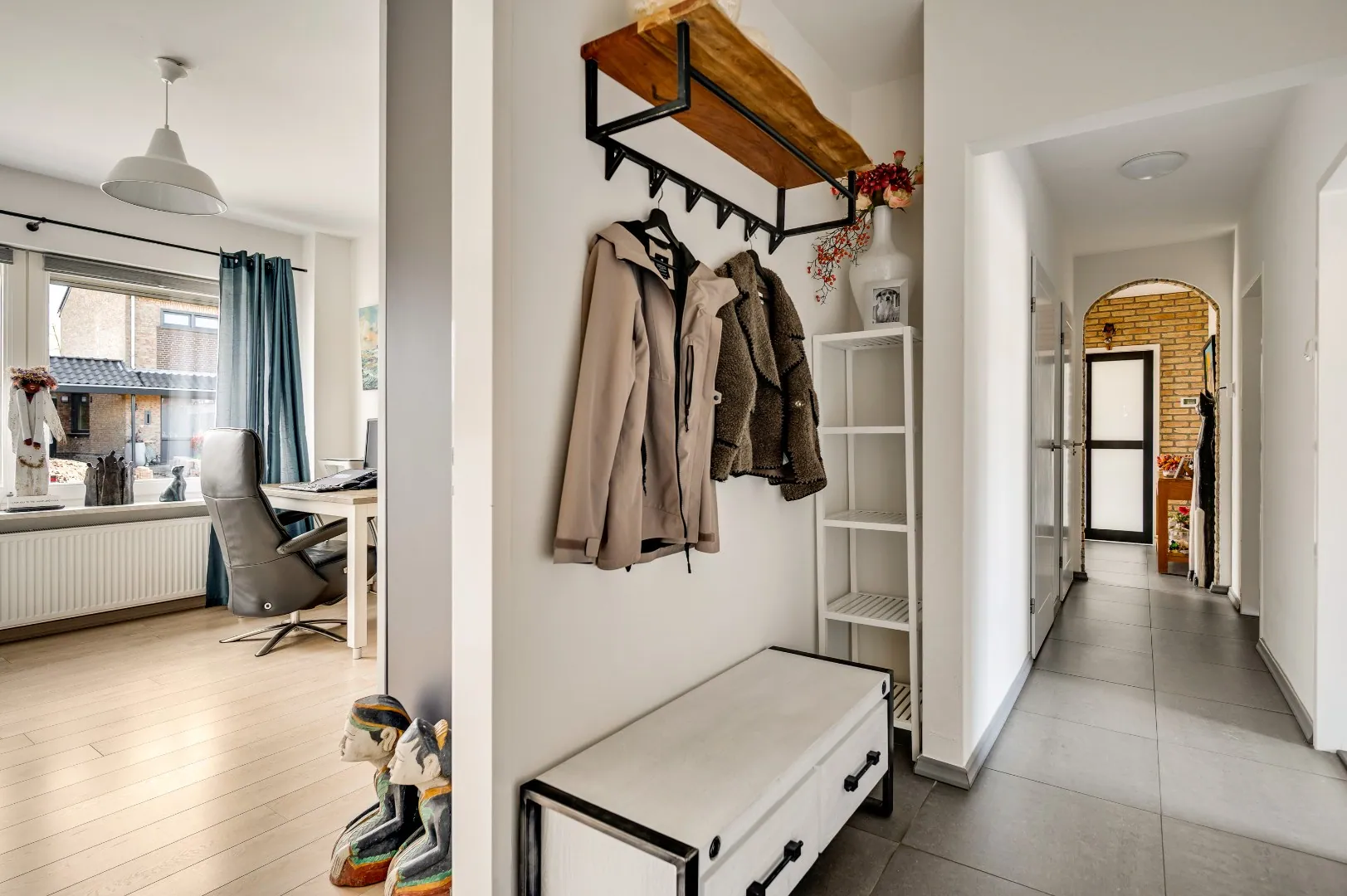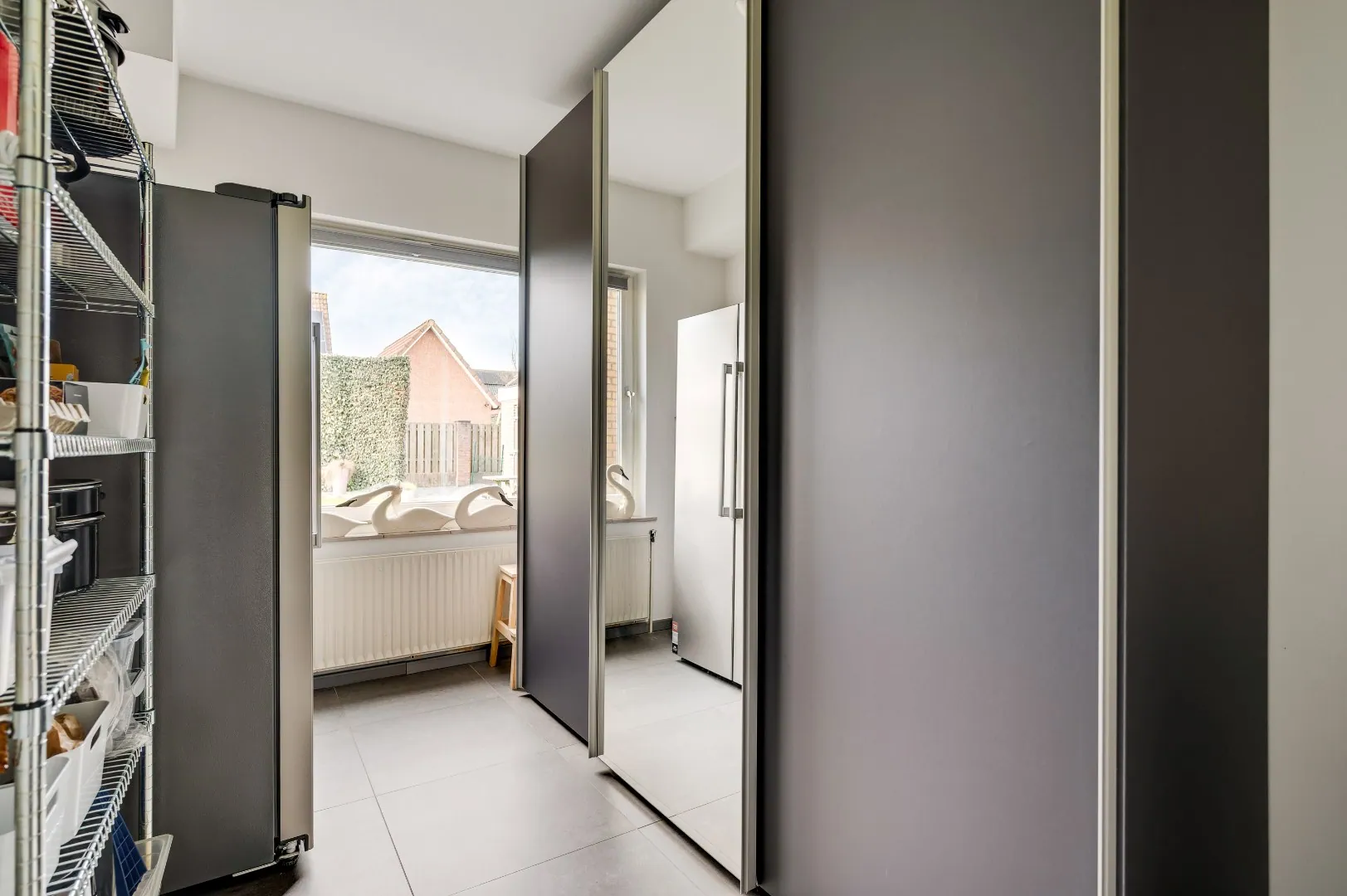 Aan het einde van de hal bevindt zich een extra achterdeur welke toegang geeft naar de brede carport, patio, oprit en toegang achterom.