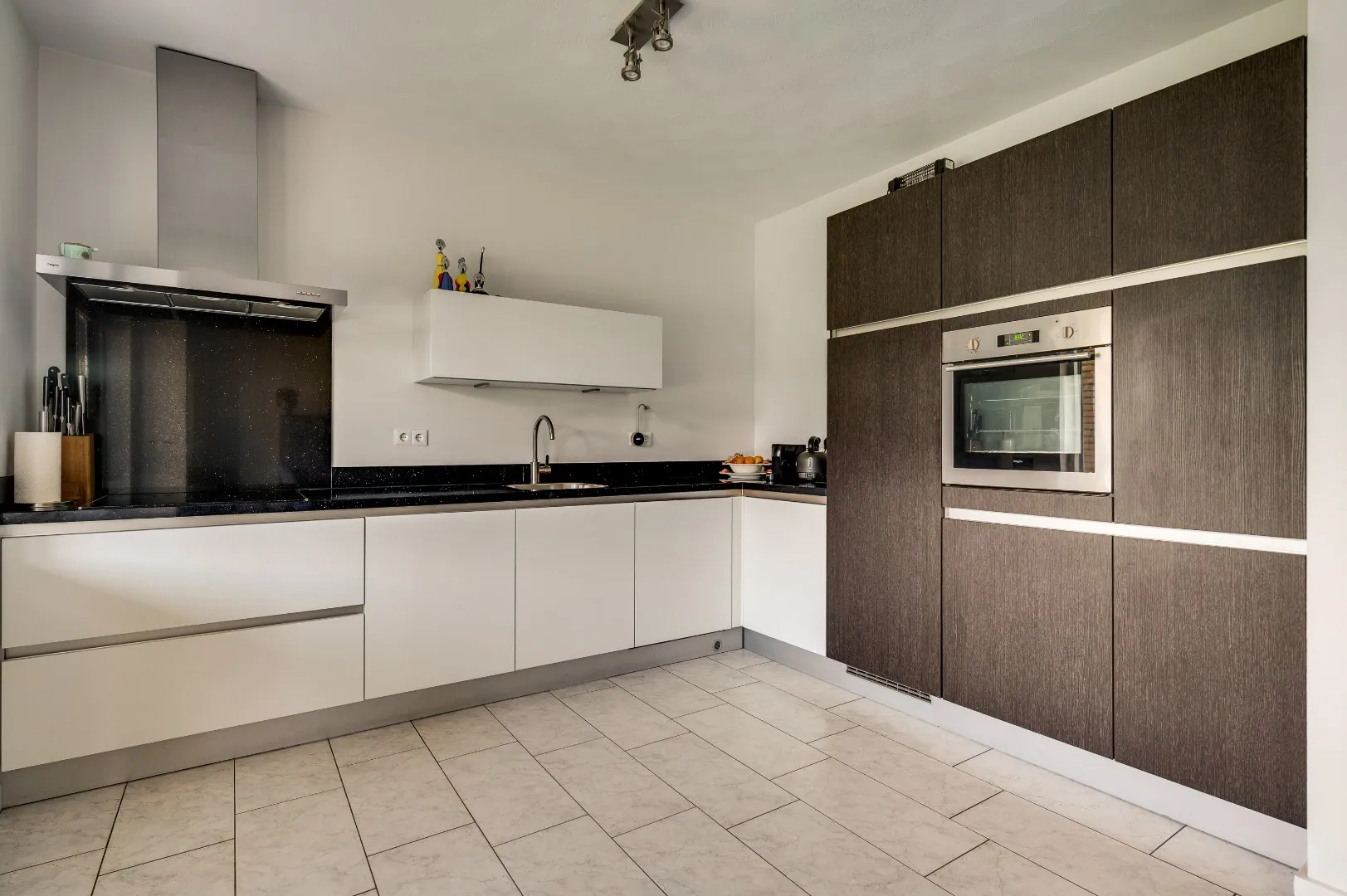 Luxe jonge strakke moderne keukenopstelling vv alle apparatuur en extra kastenwand.