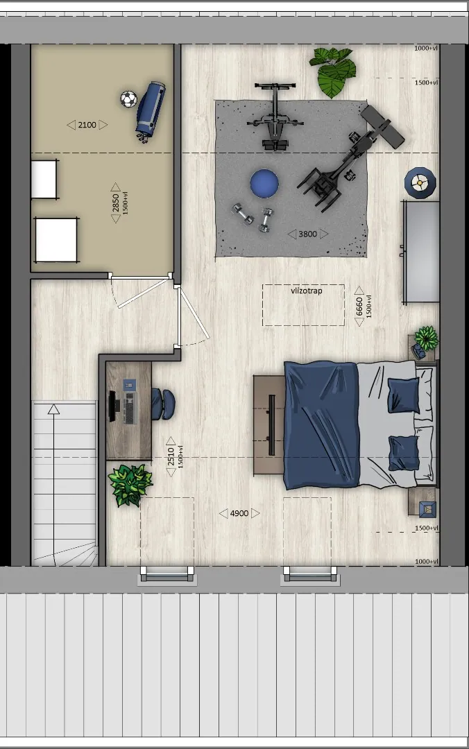 Op de verdieping is ruimte voor extra slaapkamers, een werkplek of